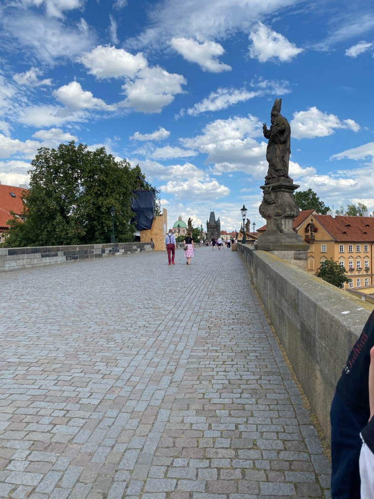 Früh am Morgen, wenn die Stadt noch schläft und der Dunst über der Moldau liegt, beginnt unser Spaziergang auf der Karlsbrücke – einem der berühmtesten Wahrzeichen Europas. Die Brücke, die seit dem 14. Jahrhundert die Altstadt mit der Kleinseite verbindet, ist nicht nur ein architektonisches Meisterwerk, sondern auch eine Bühne für das tägliche Leben: Straßenmusiker, Künstler, Touristen und Einheimische kreuzen sich hier, während die Heiligenfiguren still über das Treiben wachen.