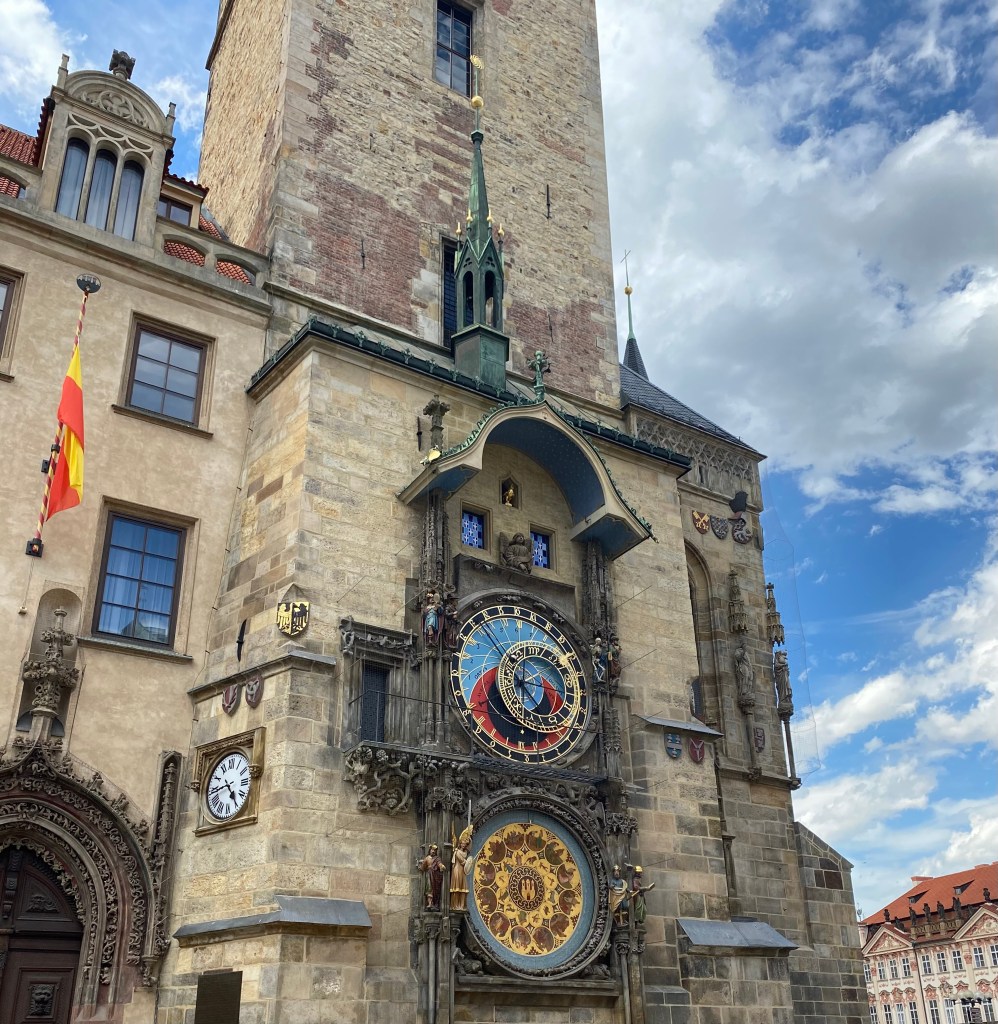 Nach dem Abstieg in die Altstadt erreichen wir den Altstädter Ring, das pulsierende Herz Prags. Hier steht das Altstädter Rathaus mit der weltberühmten astronomischen Uhr, die zur vollen Stunde ein kleines Schauspiel zeigt: die zwölf Apostel ziehen vorbei, ein Skelett läutet die Totenglocke – ein Symbol für die Vergänglichkeit. Ein Ort, an dem man sich gerne unter die Menschen mischt, in einem Straßencafé verweilt und das bunte Treiben beobachtet.