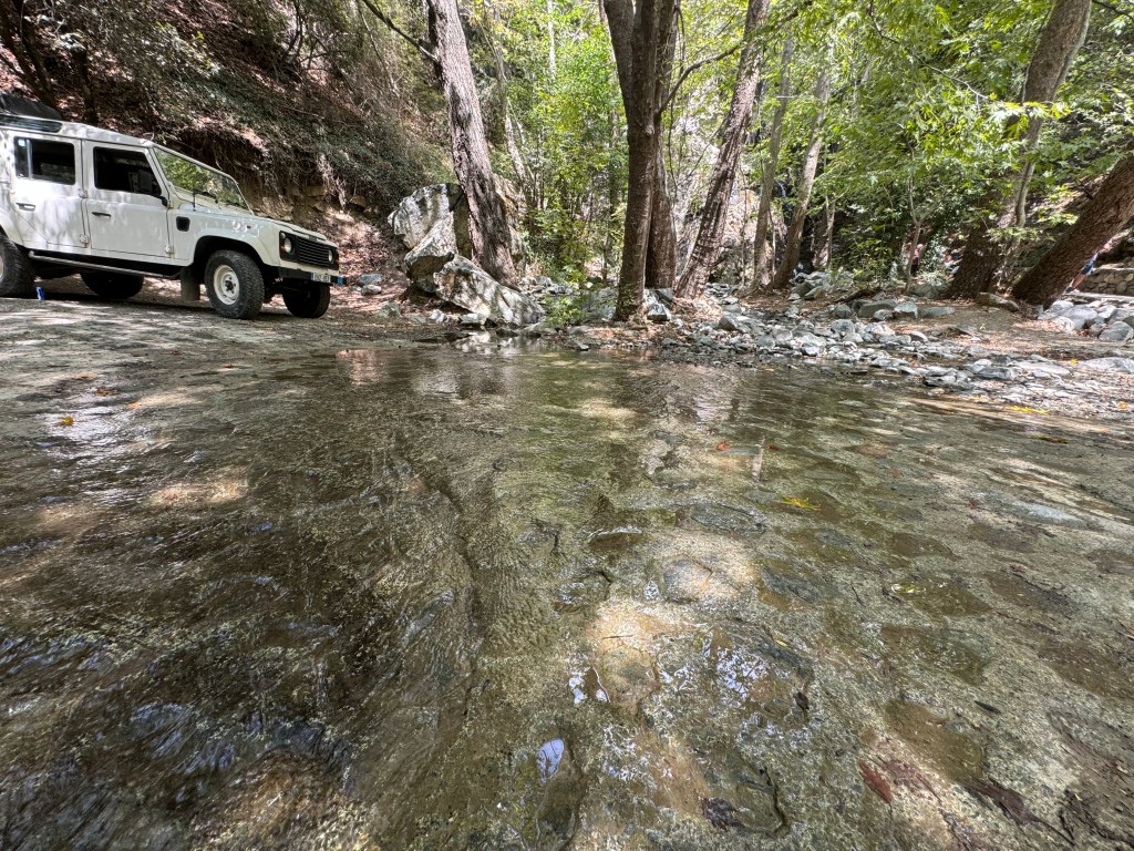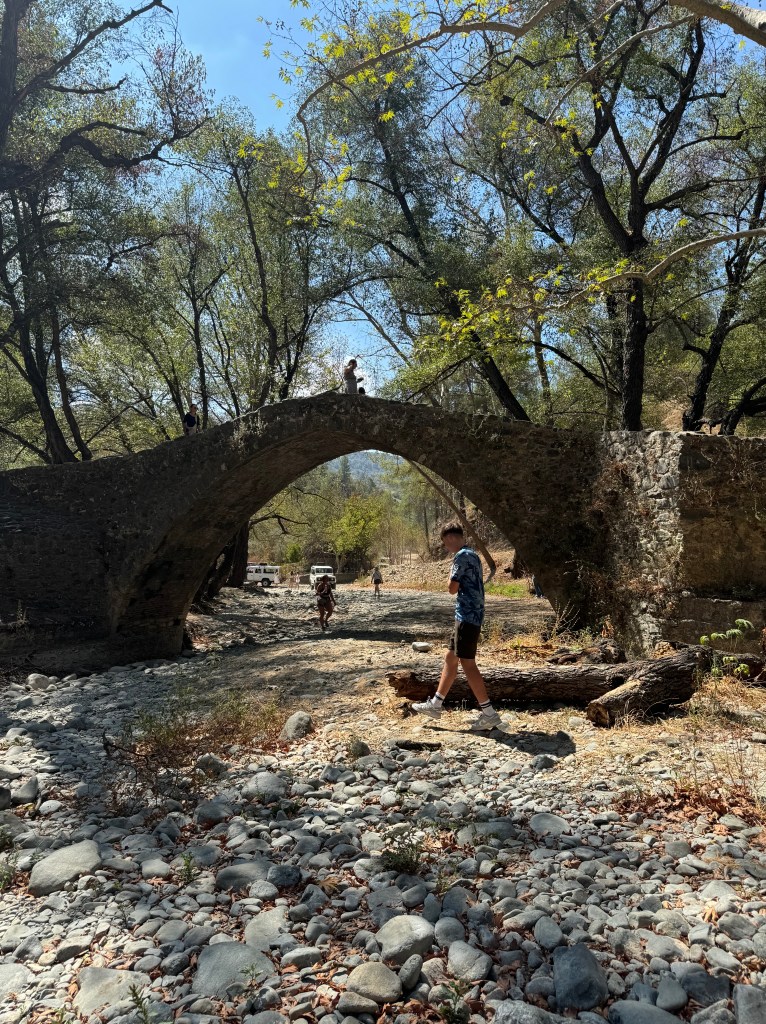 Weiter ging es hinein in die bewaldeten Regionen des Troodos-Gebirges. Zwischen schattigen Pinien und wildem Lorbeer versteckt sich ein wahrhaft mystischer Ort: die Tzelefos-Brücke. Die mittelalterliche venezianische Steinbrücke überspannt einen kleinen Flusslauf und scheint aus einem Märchen zu stammen. Umgeben von dichtem Grün und Vogelgezwitscher war dies einer der friedlichsten Orte des Tages – perfekt für Fotos und eine kleine Verschnaufpause.