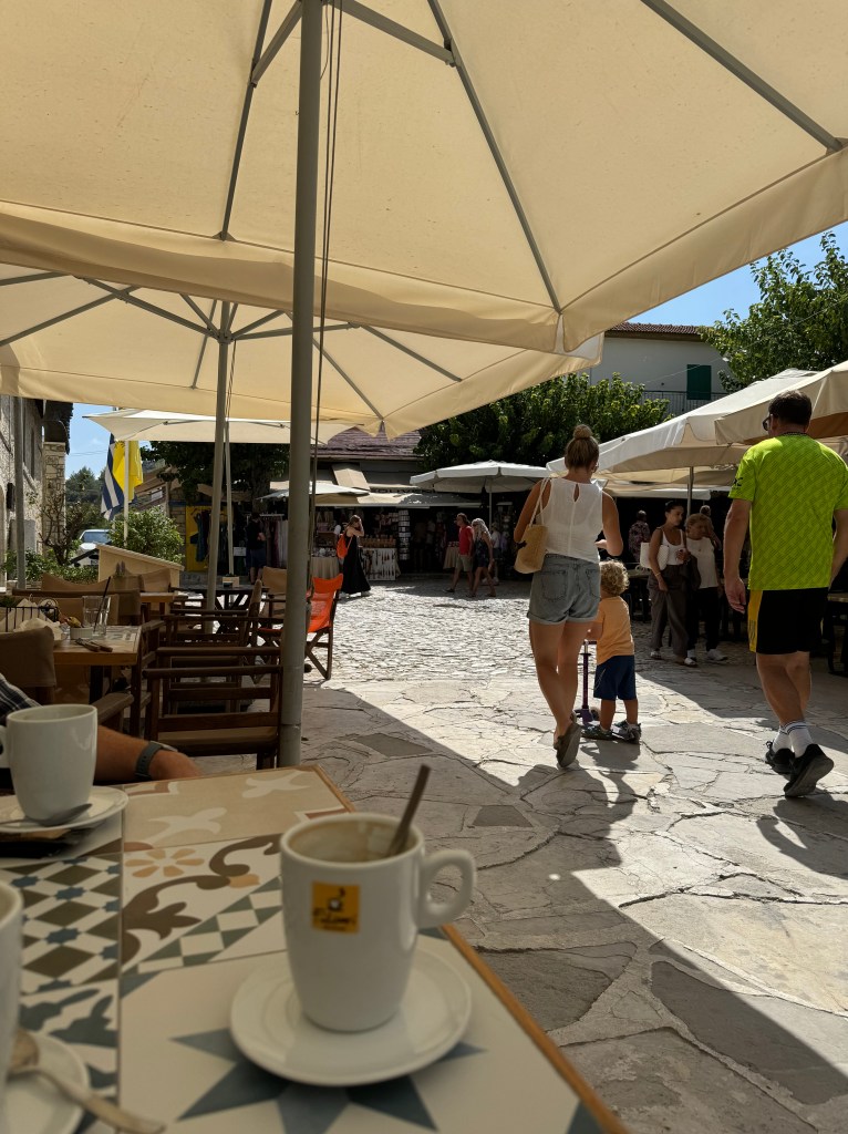 Nach dem Essen ging es weiter nach Omodos, einem der schönsten Dörfer Zyperns. Pflastersteine, enge Gassen, Weinpressen und kunstvolle Handarbeiten prägen den Ort. Besonders beeindruckend: das Kloster des Heiligen Kreuzes, das mitten im Dorf liegt. Hier blieb auch etwas Zeit für Souvenirs – handgemachte Liköre, Honig und natürlich Wein.