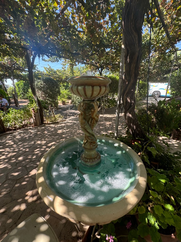 Im Restaurant Psilo Dendro legten wir eine längere Mittagspause ein. In angenehmer, schattiger Atmosphäre unter Bäumen wurde typische zypriotische Küche serviert: frischer Salat, gegrillter Halloumi, Meze und andere Spezialitäten. Die Ruhe des Ortes, das plätschernde Wasser in der Nähe und der Blick ins Grüne rundeten das Erlebnis ab.
