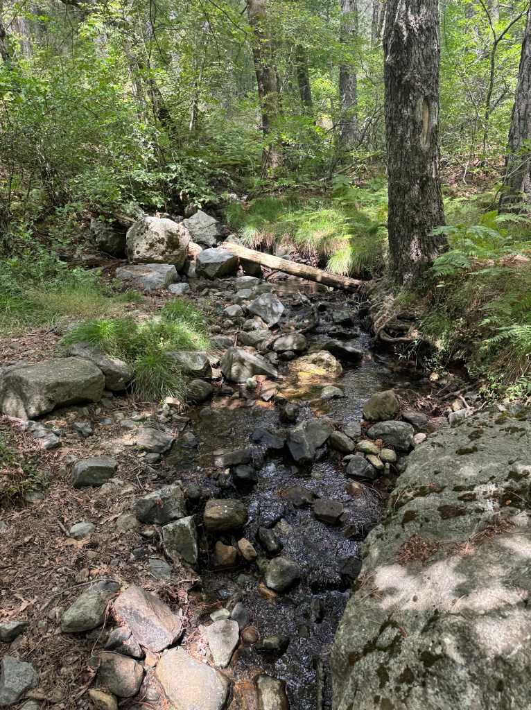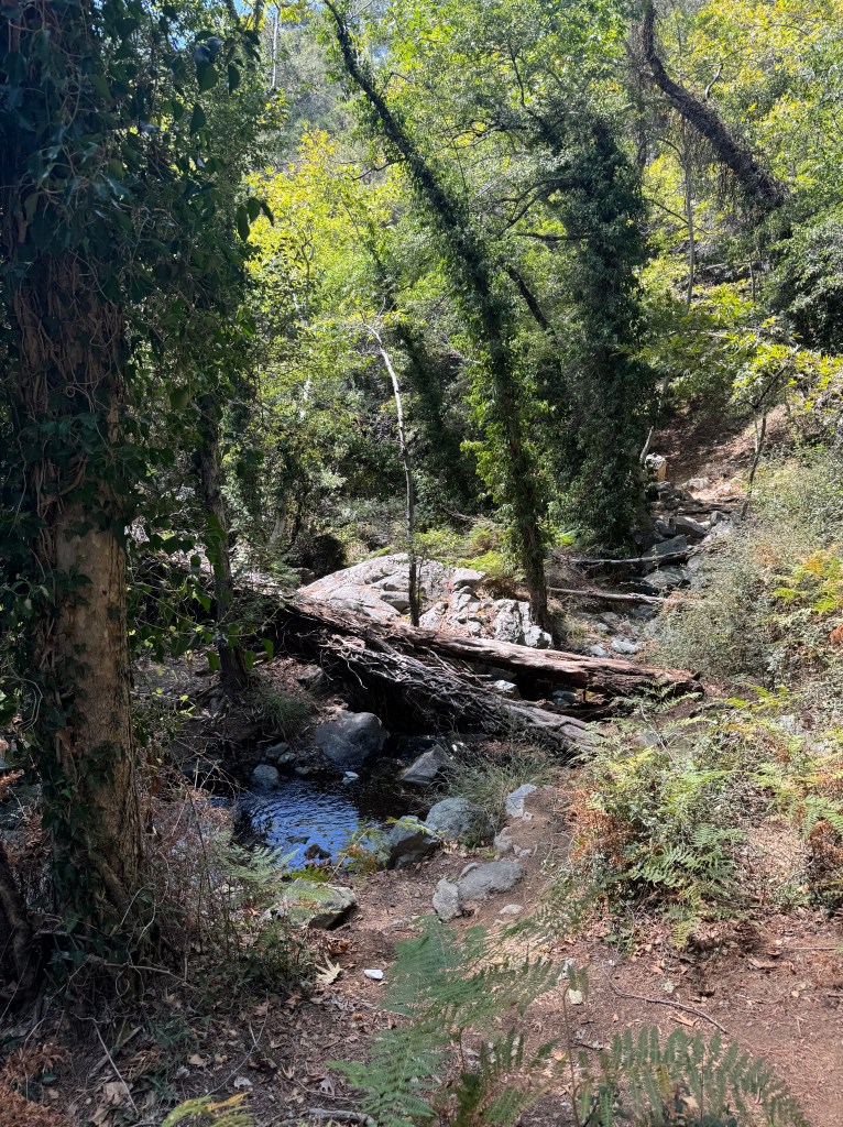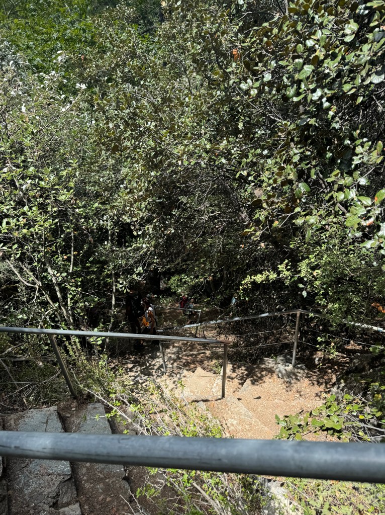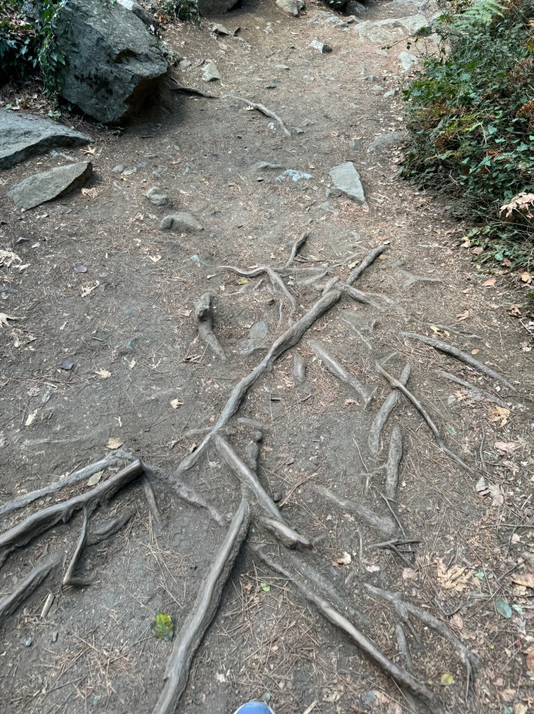 Der Weg war sehr steinig, mit vielen Wurzeln, unebenen Abschnitten und mehreren kleinen Bachquerungen, die über Trittsteine oder schmale Brücken überwunden werden mussten. Da es stetig bergab ging, war der Pfad körperlich zwar weniger anstrengend als bergauf, aber dennoch nicht ganz einfach. Gerade bei feuchtem oder glattem Untergrund war besondere Vorsicht geboten, denn es konnte stellenweise rutschig werden.