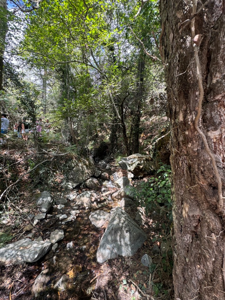 Die eigentliche Wanderung begann oberhalb des Ortes Pano Platres, auf ca. 1.200 m Höhe. Von dort aus führte uns der Kaledonia Nature Trail über eine Strecke von 3,2 Kilometern bergab durch ein dichtes Waldgebiet. Der Weg verlief entlang eines kleinen Gebirgsbaches, dessen leises Rauschen uns die gesamte Wanderung begleitete.